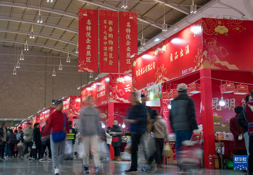 1月14日,顧客在昆明滇池國(guó)際會(huì)展中心購(gòu)買(mǎi)年貨。(新華社發(fā) 彭奕凱 攝)