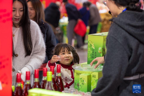 1月14日,小朋友在昆明滇池國(guó)際會(huì)展中心品嘗飲料。(新華社發(fā) 彭奕凱 攝)
