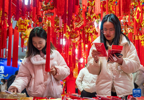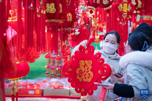 1月14日,顧客在昆明滇池國(guó)際會(huì)展中心挑選新春飾品。(新華社發(fā) 彭奕凱 攝)