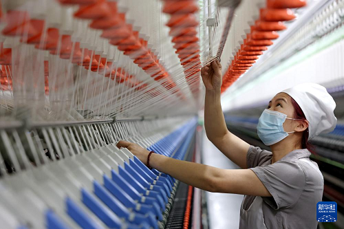 2月5日,山東棗莊經(jīng)濟(jì)開發(fā)區(qū)一家企業(yè)工人在加工高端紗線。(新華社發(fā) 孫中喆 攝)