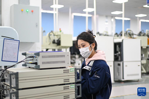 2月5日,江蘇省昆山高新區(qū)通友智能裝備有限公司工人在微型電感生產(chǎn)線上作業(yè)。(新華社發(fā) 王須中 攝)