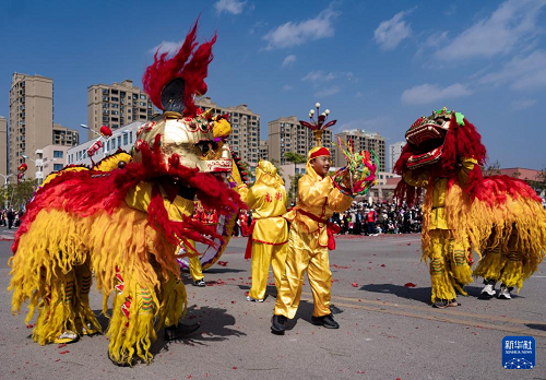 2月6日,人們在南澗縣龍燈會上表演舞獅。(新華社記者 陳欣波 攝)