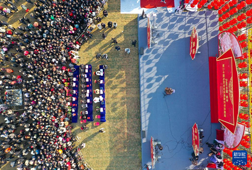 2月10日拍攝的馬街書會(huì)現(xiàn)場(chǎng)(無(wú)人機(jī)照片)。(新華社記者 郝源 攝)