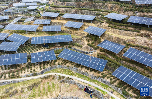 2月13日,技術(shù)人員在湖北省宜昌市秭歸縣茅坪鎮(zhèn)四溪村光伏電站建設(shè)現(xiàn)場安裝光伏板。(新華社發(fā) 鄭家裕 攝)