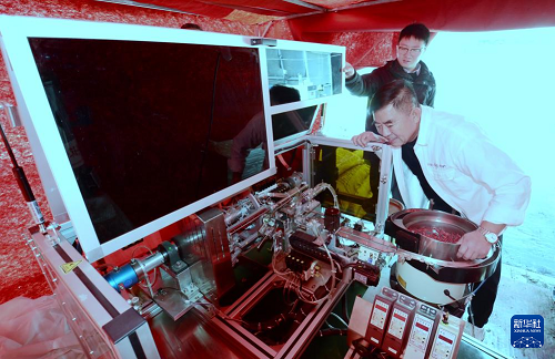 2月19日,大興區(qū)老宋瓜果專業(yè)合作社負(fù)責(zé)人宋紹堂(前)在調(diào)試新引進(jìn)的智能嫁接設(shè)備。(新華社記者 李欣 攝)