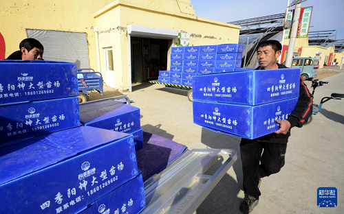 2月19日,大興區(qū)龐各莊鎮(zhèn)的農(nóng)戶在運(yùn)輸大棚蔬菜苗。(新華社記者 李欣 攝)