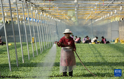 2月19日,農(nóng)民在大興區(qū)龐各莊鎮(zhèn)一育苗大棚內(nèi)工作。(新華社記者 李欣 攝)