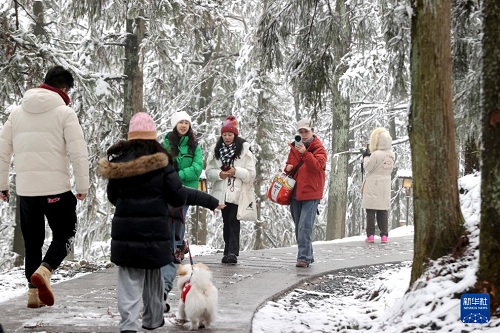 2月23日,游客在浙江省湖州市德清縣莫干山賞雪游玩。(新華社發(fā) 謝尚國(guó) 攝)