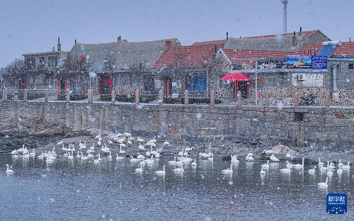 這是2月23日在山東省榮成市俚島鎮(zhèn)煙墩角村拍攝的雪景。(新華社發(fā) 李信君 攝)