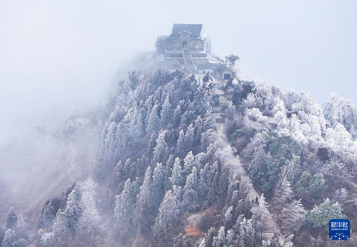 這是2月24日在湖南省衡陽(yáng)市南岳衡山風(fēng)景區(qū)拍攝的雪景(無(wú)人機(jī)照片)。(新華社發(fā) 曹正平 攝)
