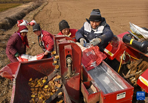 2月25日,山東省青島膠州市膠東街道斜溝崖村村民在種植馬鈴薯。(新華社記者 李紫恒 攝)