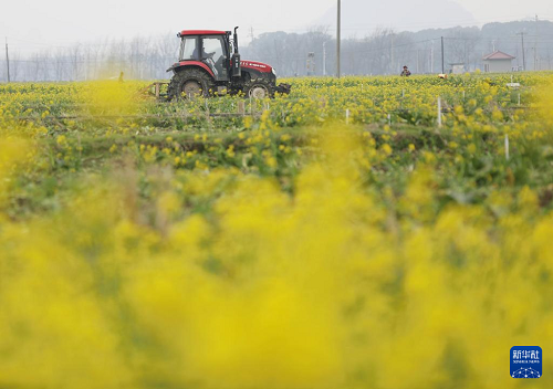2月24日,在湖南省永州市道縣營(yíng)江街道崗下村,農(nóng)機(jī)手駕駛拖拉機(jī)在翻耕農(nóng)田。(新華社發(fā) 何紅福 攝)