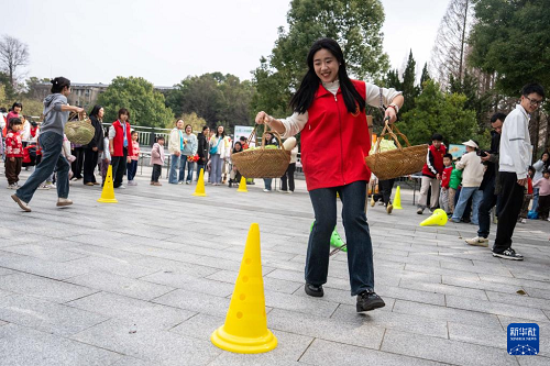 2月27日,湖南農(nóng)業(yè)大學的學生參加農(nóng)趣運動游戲。(新華社記者 陳思汗 攝)