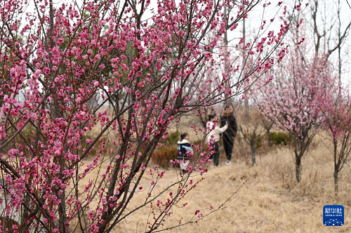 3月1日,游客在河南省沁陽(yáng)市王曲鄉(xiāng)一處鄉(xiāng)村游園賞梅。(新華社發(fā) 楊帆 攝)