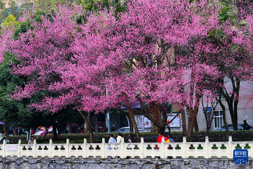 3月1日,游客在重慶市黔江區(qū)河濱公園觀賞梅花。(新華社發(fā) 楊敏 攝)