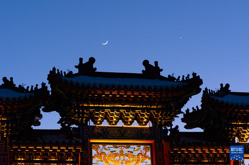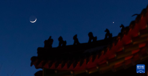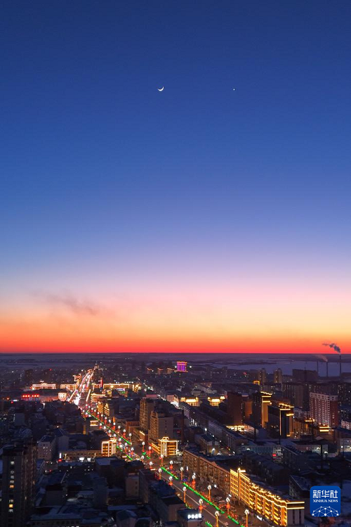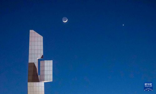 3月2日在黑龍江省哈爾濱市拍攝的金星伴月。(新華社發(fā) 原勇 攝)