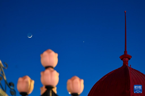 3月2日在黑龍江省富錦市拍攝的金星伴月。(新華社發(fā) 朱宗強(qiáng) 攝)