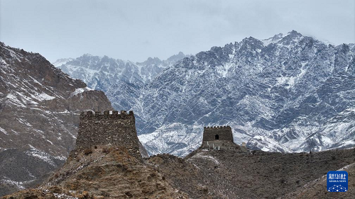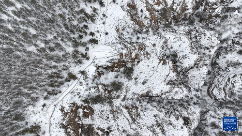 3月2日在寧夏賀蘭山蘇峪口國家森林公園拍攝的賀蘭山雪景(無人機(jī)照片)。(新華社記者 王鵬 攝)