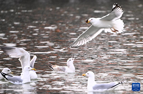 3月4日,海鷗在海河上飛翔。(新華社記者 趙子碩 攝)
