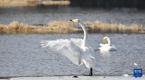 3月4日,天鵝在密云水庫流域的清水河棲息。(新華社記者 李欣 攝)