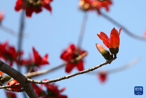這是在廣州市政府前拍攝的木棉花(3月19日攝)。(新華社記者 鄧華 攝)