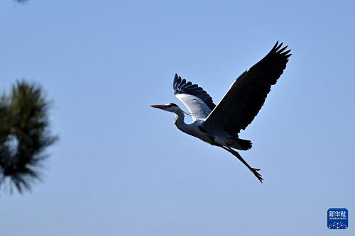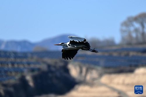 3月19日,在山西省方山縣積翠鎮(zhèn),蒼鷺在空中飛翔。(新華社記者 詹彥 攝)