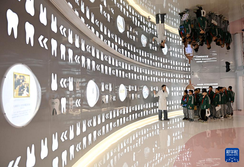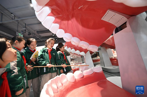 3月20日,陜西省西安市新城區(qū)通濟坊小學(xué)的學(xué)生在西安交通大學(xué)口腔醫(yī)院口腔科普教育基地了解口腔健康知識。(新華社記者 李一博 攝)