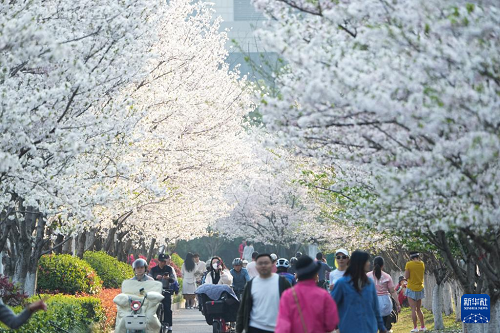 3月26日,人們?cè)跈鸦溟g觀賞美景。(新華社記者 翁忻旸 攝)