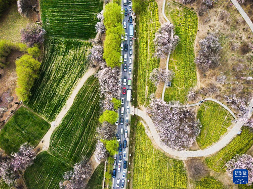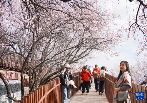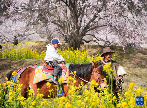 3月29日,游客在林芝市巴宜區(qū)嘎拉村賞花游玩。(新華社記者 齊芷玥 攝)
