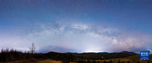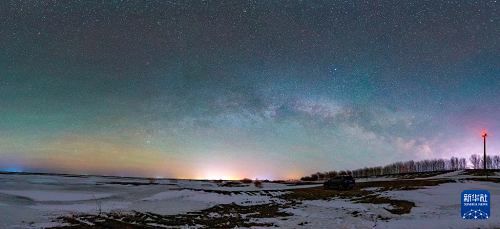 3月30日凌晨在黑龍江省哈爾濱市阿城區(qū)拍攝的“銀河拱橋”(拼接照片)。(新華社發(fā) 劉大鵬 攝)