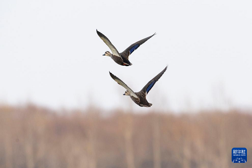 這是4月1日拍攝的興凱湖國家級(jí)自然保護(hù)區(qū)內(nèi)的斑嘴鴨。(新華社記者 謝劍飛 攝)