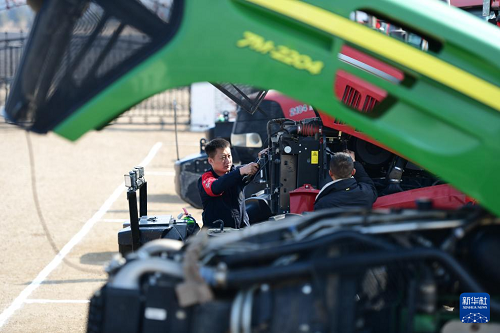 4月7日,在北大荒集團北安分公司長水河農場有限公司第二管理區(qū)農具場,農機技術人員在對農機具開展集中檢修。(新華社發(fā) 錢泊羽 攝)