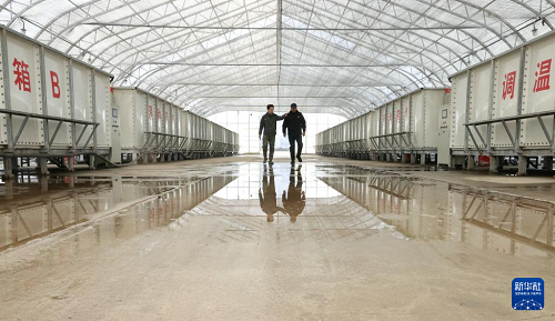 4月7日,北大荒集團建設農場有限公司催芽中心技術人員在催芽車間巡查。(新華社發(fā) 許穎獻 攝)