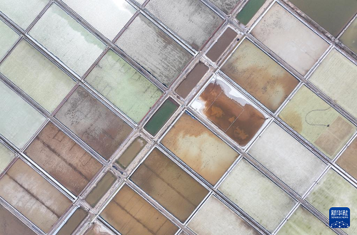 4月7日拍攝的連云港市灌西鹽場(chǎng)鹽田景象(無(wú)人機(jī)照片)。(新華社發(fā) 王健民 攝)