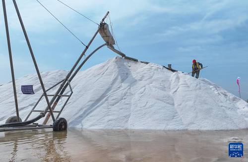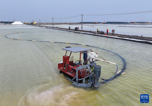 江蘇連云港:萬(wàn)畝鹽田春季扒鹽忙