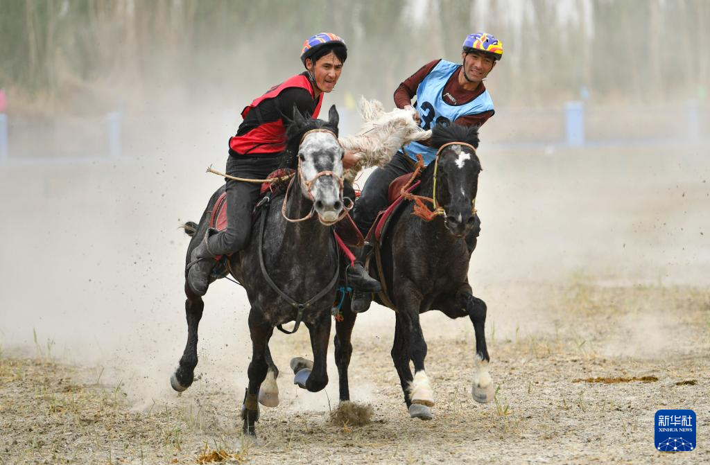 4月12日,村民在新疆于田縣先拜巴扎鎮(zhèn)農(nóng)牧民運(yùn)動(dòng)場參加叼羊比賽。(新華社記者 胡虎虎 攝)