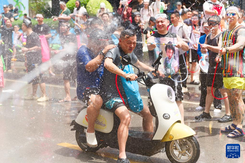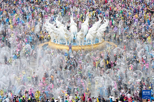 4月15日,云南多地舉行潑水節(jié)活動(dòng),各族群眾和游客用相互潑水的方式互送祝福,慶祝潑水節(jié)。