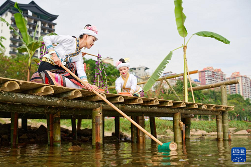 4月15日,云南省西雙版納傣族自治州景洪市瀾滄江畔舉行傣歷新年取水儀式。(新華社記者 高詠薇 攝)