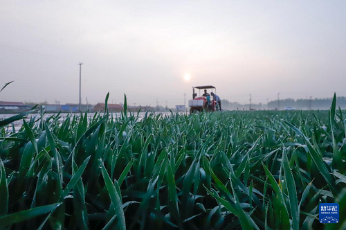 4月20日,在河北省遵化市東新莊鎮(zhèn)西莊村,農(nóng)民駕駛農(nóng)機(jī)在田間覆膜。(新華社發(fā) 劉滿倉 攝)