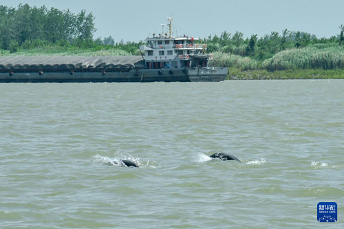 5月21日,在安徽省銅陵市義安區(qū)胥壩鄉(xiāng)附近的長江江面上,多頭野生江豚在江面上不時躍出水面,與浪花共舞。近年來,當?shù)貙嵤┫到y(tǒng)性生態(tài)修復,長江江豚數(shù)量穩(wěn)中有升。