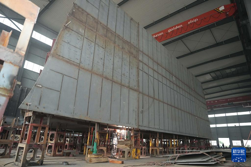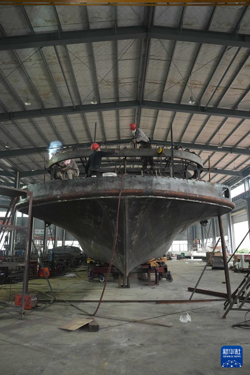 5月22日,工人在位于沅江市的湖南金航船舶制造有限公司生產(chǎn)船舶。(新華社記者 薛宇舸 攝)