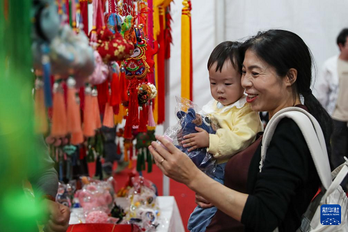 5月29日,市民在慶陽(yáng)香包民俗文化節(jié)非遺沉浸體驗(yàn)區(qū)選購(gòu)香包。(新華社記者 郎兵兵 攝)