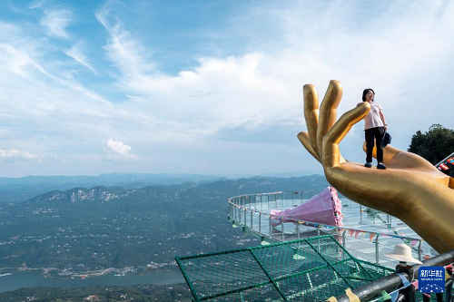 7月7日,在恩施州巴東縣三里城哨棚頂景區(qū),游客在步道觀光。(新華社記者 伍志尊 攝)