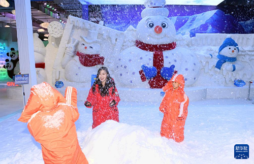 7月9日,在哈爾濱太陽島冰雪藝術(shù)館互動(dòng)戲雪區(qū),游客體驗(yàn)夏日戲雪。(新華社發(fā) 劉洋 攝)