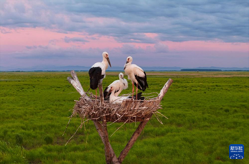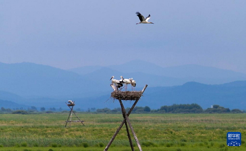 盛夏時(shí)節(jié),在位于黑龍江省富錦市的黑龍江三環(huán)泡國(guó)家級(jí)自然保護(hù)區(qū),人工巢內(nèi)的東方白鸛雛鳥羽翼漸豐,即將離巢。據(jù)保護(hù)區(qū)管理局介紹,保護(hù)區(qū)在落馬湖管護(hù)站搭建的20個(gè)人工巢今年全部“入住”東方白鸛,共孵育雛鳥70余只。