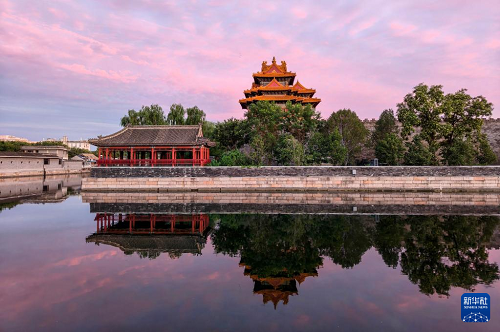 晚霞中的北京故宮東北角樓(手機照片,7月20日攝)。(新華社記者 陳曄華 攝)