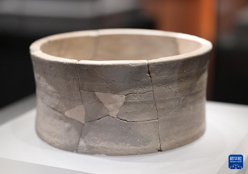 這是一件出土自雄安古州城遺址的戰(zhàn)漢時(shí)期的陶量(7月28日攝)。(新華社記者 李賀 攝)