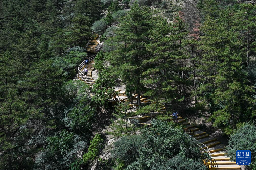 7月30日,游客在賀蘭山國家森林公園游玩。(新華社發(fā) 陳周旭洋 攝)