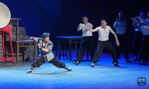 演員在貴州飯店國(guó)際會(huì)議中心表演民族歌舞劇《山河同心》(7月30日攝)。(新華社記者 陶亮 攝)