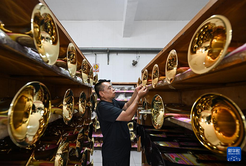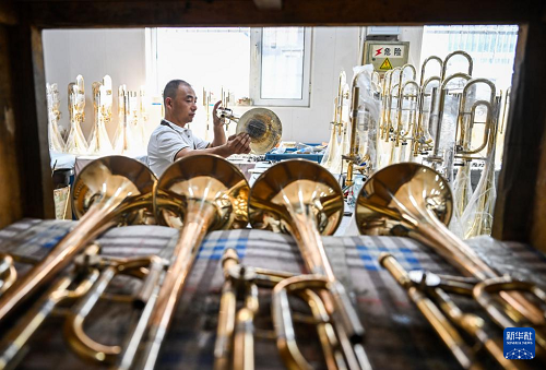 目前,蔡公莊鎮(zhèn)擁有樂器相關(guān)企業(yè)超100家,生產(chǎn)涵蓋薩克斯、圓號、小號等100余種銅木管樂器,年生產(chǎn)西洋管樂器達(dá)40余萬支,其中超八成遠(yuǎn)銷海外。